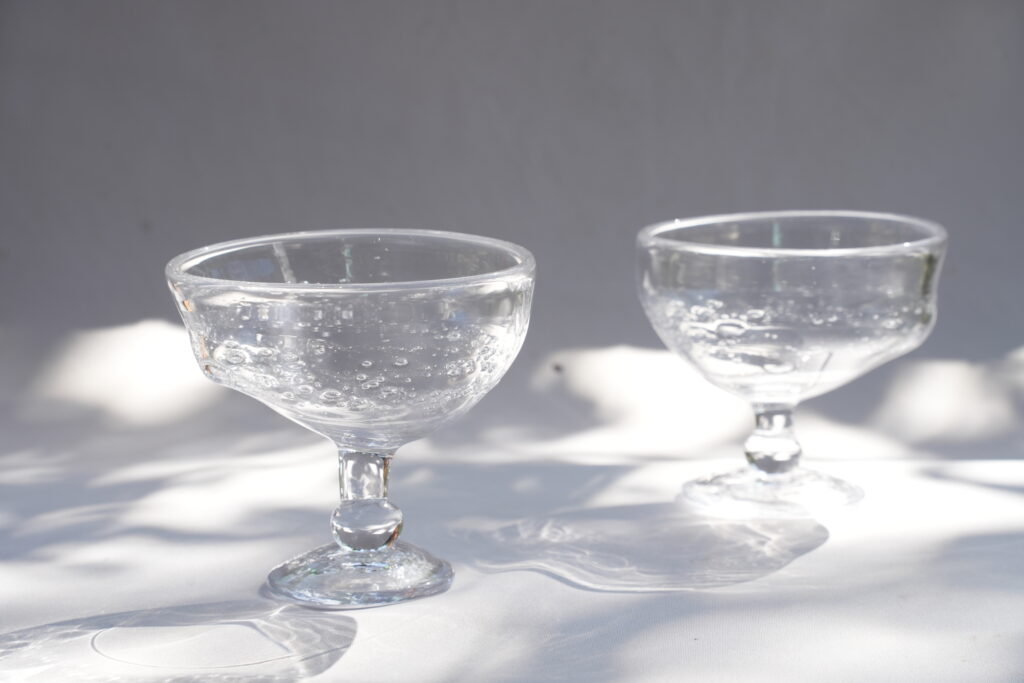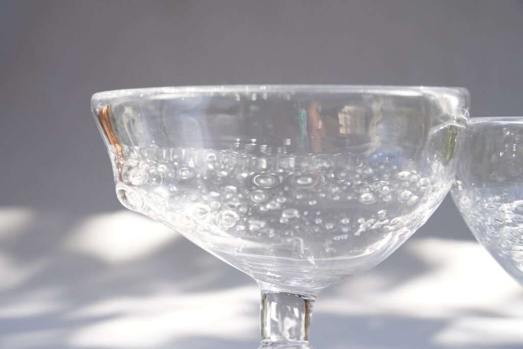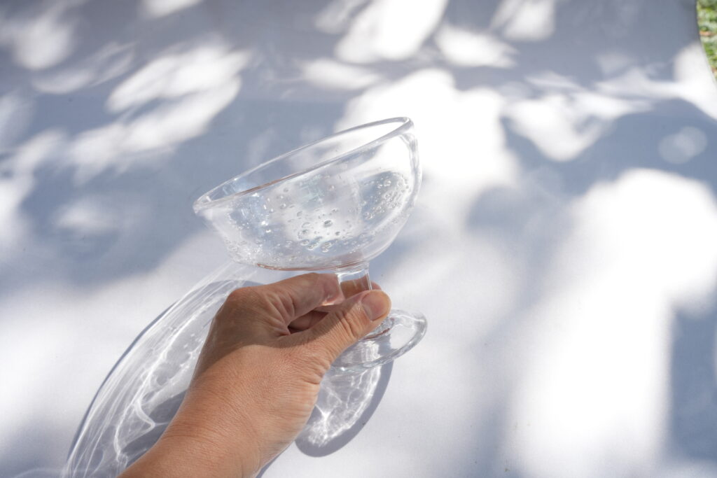 手吹きガラスならではの柔らかなゆらぎと気泡の表情を、