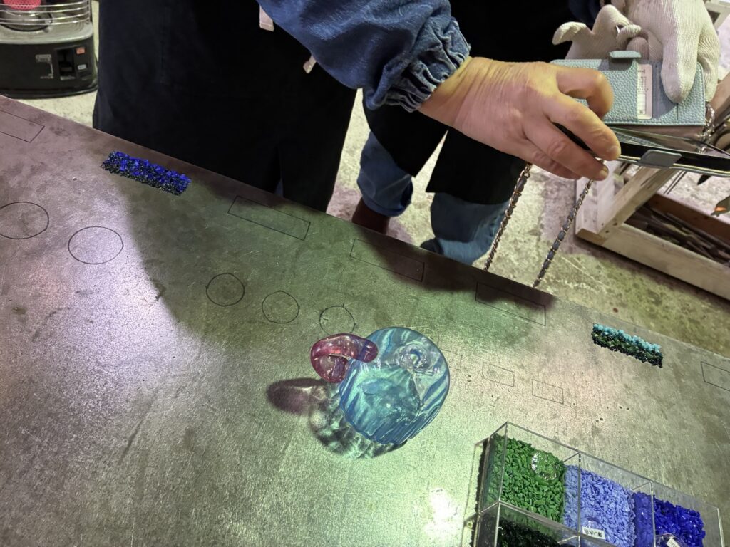ガラスはすぐに冷めてしまうのでとても忙しい時間との競走ぐらいの体験です。