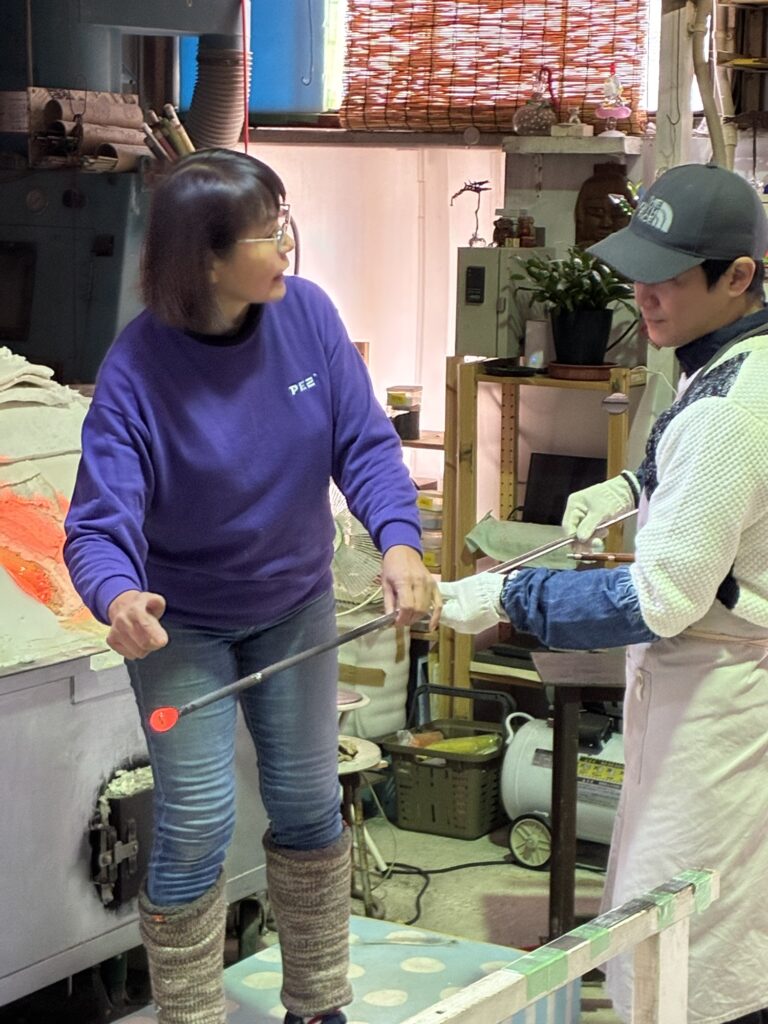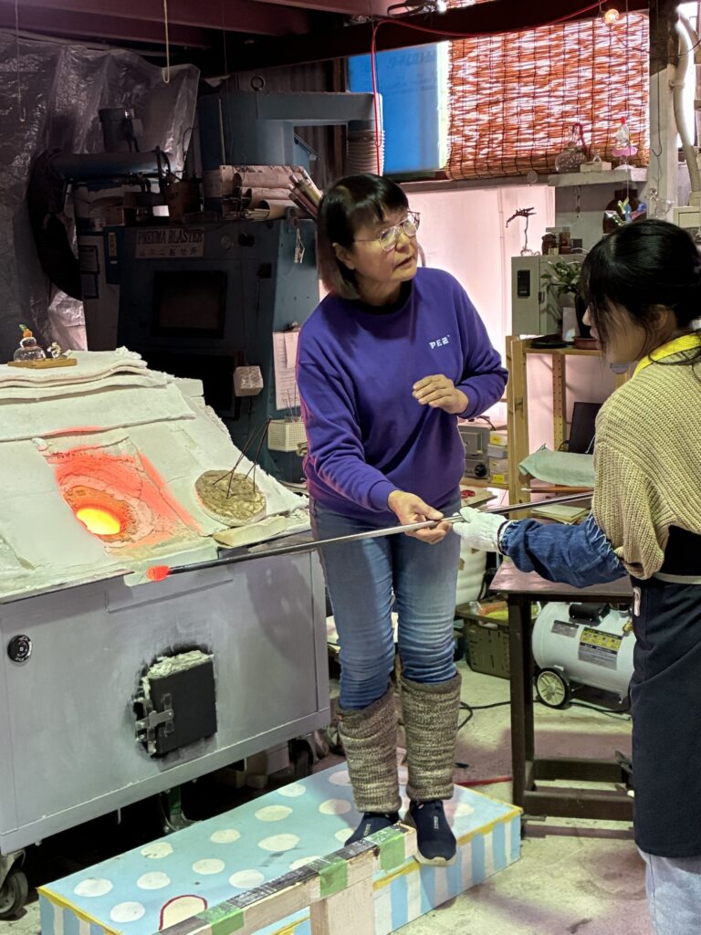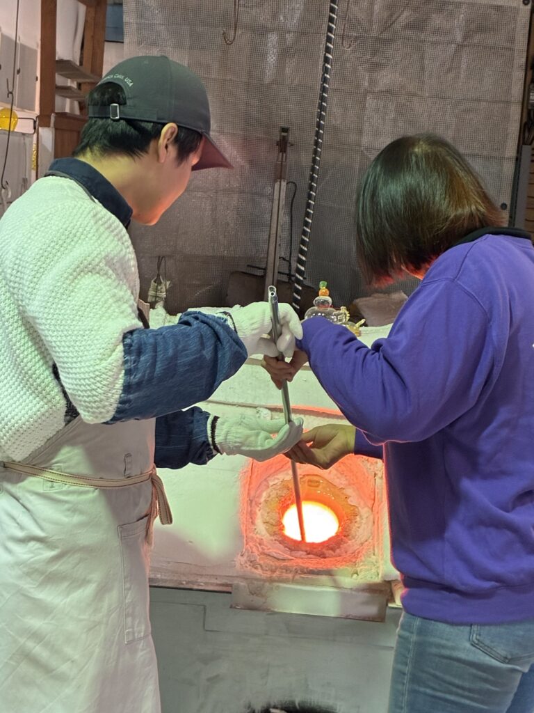 吹きガラス体験の時ガラスか溶けておる炉の蓋を開けると「うわーあったかい」っとみなさん言われます。